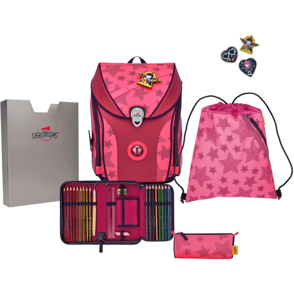 - Den ErgoFlex MAX gibt es im praktischen Komplett-Set mit Heftebox, Sportbeutel, Faulenzermäppchen, Schüleretui mit Staedtler Qualitätsstiften und je nach Motiv mit 2 Wechselbuttons und einem Anhänger oder 3 Wechselbuttons