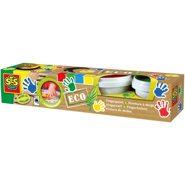 - Inhalt: 4 Töpfe mit je 110 g Fingerfarbe in den Farben: Rot, Grün, Blau,